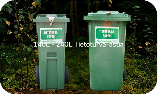 140L ja 240L lukittavat tietoturva-astiat. Nämä soveltuvat niin arkaluontoisen materiaalin kuin paperien keräykseen sekä turvalliseen säilyttämiseen.